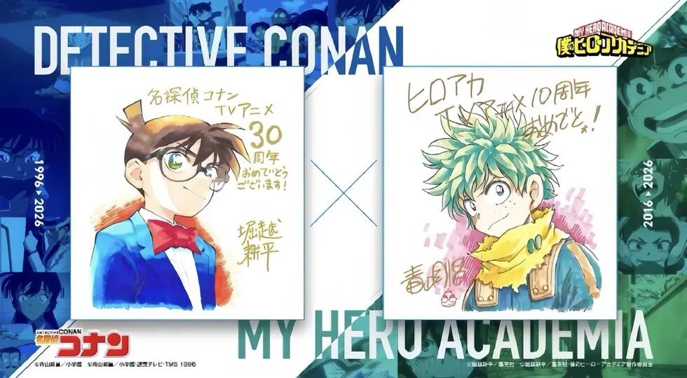備受關注的跨作品聯動發生於2026年1月31日,本身是一項帶有高度紀念意義的官方企劃,目的是同時慶祝《名偵探柯南》動畫播出滿30週年,以及《我的英雄學院》動畫迎來10週年的重要里程碑。對日本動畫圈而言,這象徵著兩個不同世代、卻同樣具有全球影響力的作品,在同一時間點相互致意與交流。