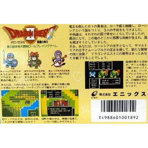 "Dragon Quest II," also known as "Dragon Warrior II" in North America, is a role-playing game (RPG) developed by the Japanese game company Enix (now Square Enix). It was first released in Japan on January 26, 1987. This game is the second installment in the "Dragon Quest" series and was later released in North America and Europe. In addition to the Nintendo Family Computer (Famicom) platform, it has been ported to multiple platforms, including MSX, Super Famicom, Game Boy Color, Wii, 3DS, PS4, Switch, iOS, and Android.