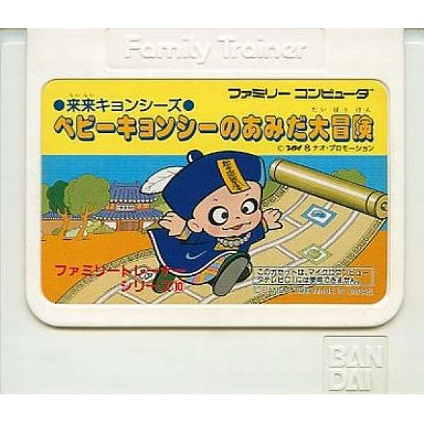 Bandai released Family Trainer No.10: Rairai Kyonshiizu (ファミリートレーナー 第10弾 夾來夾來!キョンシーズ), also known as Rairai! Kyonshi: Baby Zombie’s Amida Adventure, as the tenth entry in the Family Trainer series for the Famicom. This game combined the wildly popular Taiwanese TV drama Rai Rai! Kyonshi (part of the Ghostly Taoist series) with innovative physical gameplay, making it one of the most creative and physically demanding titles in the series.