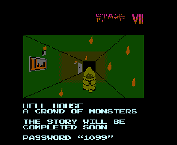 從街機移植到FC及PCE平台的遊戲,根據美國恐怖電影電影13號星期五改編,FC版本感受不到原作的恐怖氣氛。總共有七大關卡,每次過關後就會出現PW,密碼可參考網站圖片,分別為S2:1055、S3:3739 、S4:0705、S5:2509、S6:4090、S7:1099。故事設定在街機劇情發生前十年,男主角Rick去世後, 女主角Jennifer前往墓園探視,沒想到閃電劈到Rick的墳墓後居然讓其復活,之後閃電也劈向南瓜魔王,南瓜魔王復活後馬上擄走Jennifer,於是救援行動就此展開。遊戲操作相當單純 ,利用跳躍來躲過敵方攻擊或是攀爬,透過揮動來進行攻擊,如果遇到無法消滅的敵人,則需要快速離開,免得瞬間大量失血導致死亡。