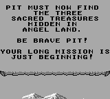 為防止聖寶在皮特修行期間被敵人奪走,帕露提娜將三件聖寶封印並分別交由三名要塞守護者看管,使其變成玩家最終必須突破的三大堡壘試練。必須穿越冥府塔、橫越地上世界、攀上天空之塔,並取得力量後返回天宮,準備迎接惡魔軍的真正侵襲。整體劇情雖然簡潔,但以神話寓言式敘述方式呈現,有著Game Boy時代少見的敘事深度,也為皮特的冒險注入成長與命運感。
