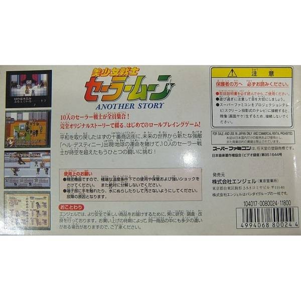 Released on September 22, 1995, the Super Famicom game "Sailor Moon ANOTHER STORY" (美少女戦士セーラームーン ANOTHER STORY) was developed and published by Angel. It is an RPG based on the fifth anime series, "SuperS." The game's five chapters are entirely independent of the original storyline. One day, mysterious warriors of fate attack the Sailor Soldiers. To save the injured Chiba Mamoru, they must find four hidden crystals on Earth and a rose crystal, setting off their adventure.