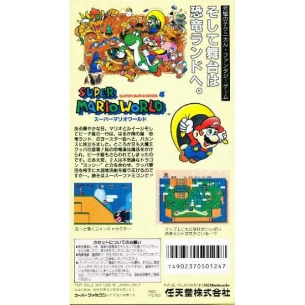《超級瑪利歐世界》(Super Mario World)是任天堂於1990年在超級任天堂(Super Famicom/SNES)平台推出平台動作冒險遊戲,也是該系列的第四部作品,跟《F-ZERO》同日發行,兩款遊戲是首款超任平台的作品。遊戲不僅繼承前作的經典元素,還藉助超級任天堂的強大硬體性能,對畫面、玩法及系統進行全面升級,在許多年後仍被專業遊戲雜誌評選為歷史上最好的遊戲之一,之後移植在GBA及Virtual Console平台,是唯一總銷售量超過兩千萬套的超任遊戲。