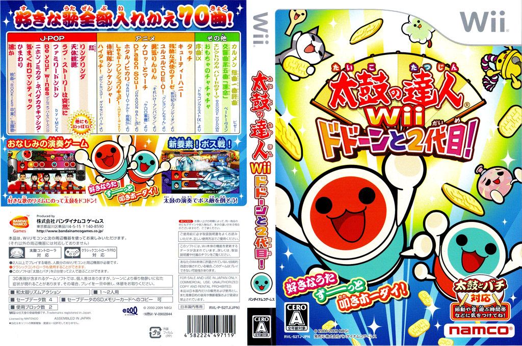 “Taiko no Tatsujin Wii: Dodoon to Nidaime!” (literally “Taiko no Tatsujin Wii: Boom Boom! The Second Generation!”) is the second entry in the Taiko no Tatsujin home console series for the Nintendo Wii, released by Bandai Namco in 2009. Building on the success of the first Taiko no Tatsujin Wii, this sequel expands the experience with more songs, mini-games, and mission challenges, making it one of the most popular rhythm games for family gatherings and parent-child entertainment at the time.