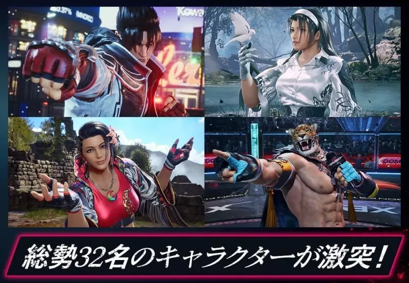 角色方面,首發收錄超過30位角色,包括經典人物如保羅(Paul)、拉斯(Lars)、艾迪(Eddy)、妮娜(Nina)、以及粉絲最愛的凌小雨林小霞(Ling Xiaoyu)與花郎(Hwoarang)等。角色模型重製程度極高,每位人物的服裝、動作、打擊感都有顯著提升。此外,也加入幾位全新角色,如擅長混合格鬥的法國新星 Azucena,以及與仁過去有重要關聯的新角色Reina,為劇情注入新的變數。