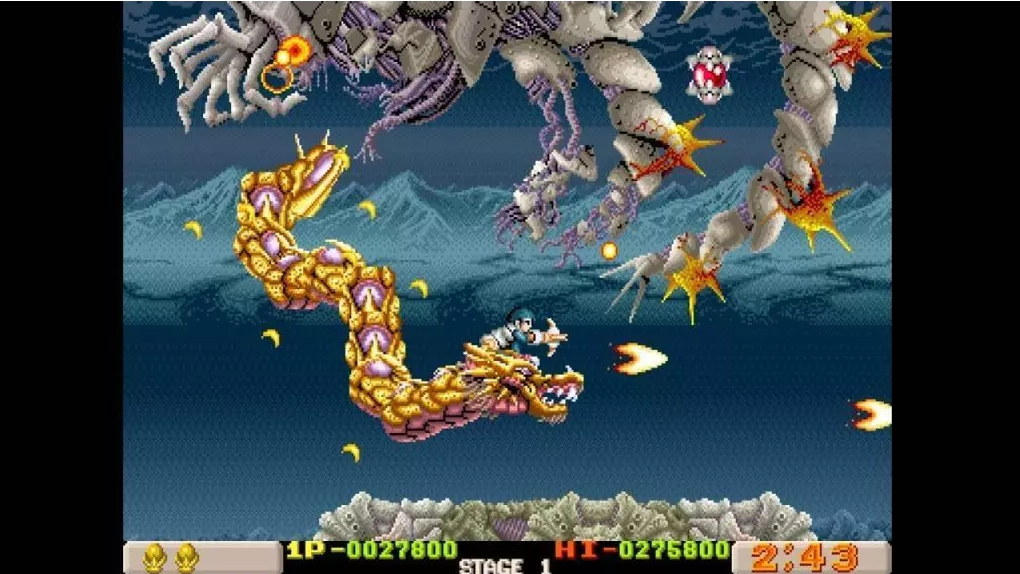 Dragon Breed delivers the most visually striking and mechanically intense experience of the trio. The protagonist, King Kayus, rides a massive dragon named Bahamoot, whose body acts as both shield and weapon. Players can use Bahamoot’s movements defensively while simultaneously attacking with fire breath and agile dodging mechanics. Among the three titles, Dragon Breed is considered the most challenging and fast-paced, appealing to seasoned players.