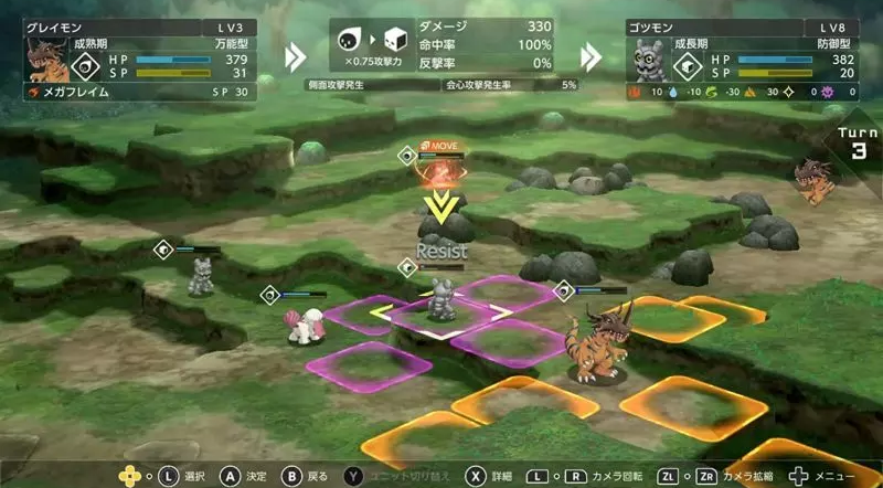 Gameplay alternates between two modes. The first is a visual novel-style story mode, where players read extensive text, interact with characters, and make crucial decisions. The second is a tactical RPG battle system, utilizing turn-based grid combat. Players command their Digimon to move, attack, or use skills, with effectiveness influenced by factors like terrain, positioning, and emotional states. Energy can also be used to trigger Digivolution and shift the tide of battle. While the combat isn't overly complex, difficulty ramps up as the story progresses.