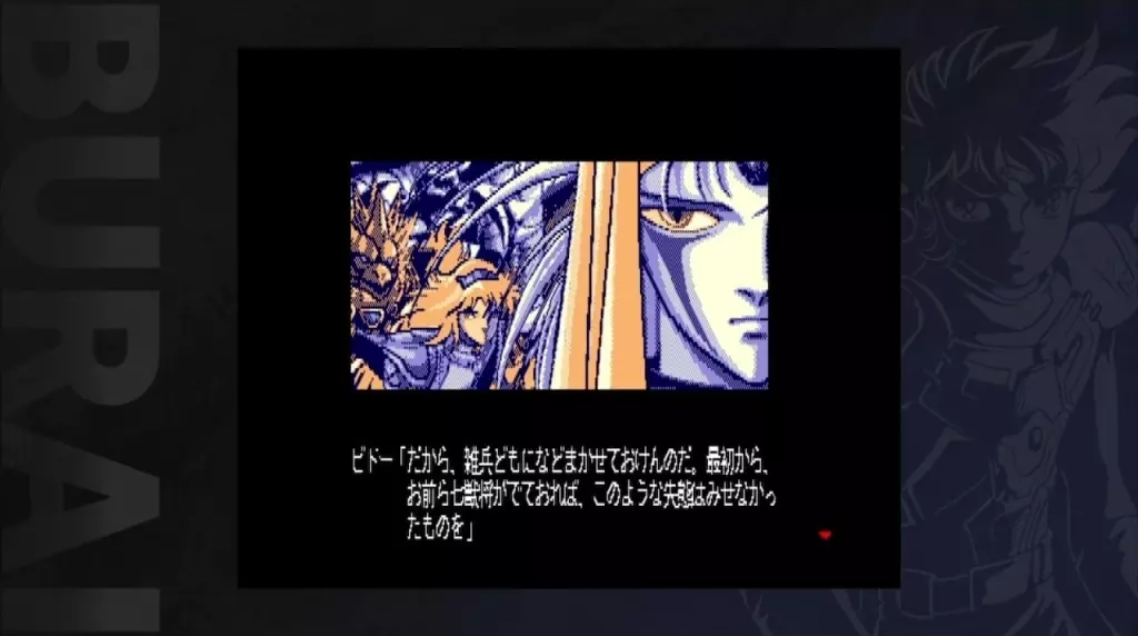 BURAI is set in a vast and intricately constructed fantasy world, reminiscent of The Hakkenden, where gods, demons, humans, elves, and dragons coexist. At its core lies the sweeping tale of eight heroes—the “Eight Warriors of Light”—who rise against the dark god Bido (Barumasu). Each of these heroes hails from different races, social classes, and regions, with their destinies initially unconnected. However, after receiving divine visions and omens, their paths converge to challenge a common evil. This narrative structure, divided into multiple chapters with different protagonists, was revolutionary for its time and became a blueprint for many later RPGs.