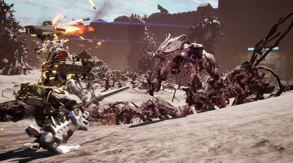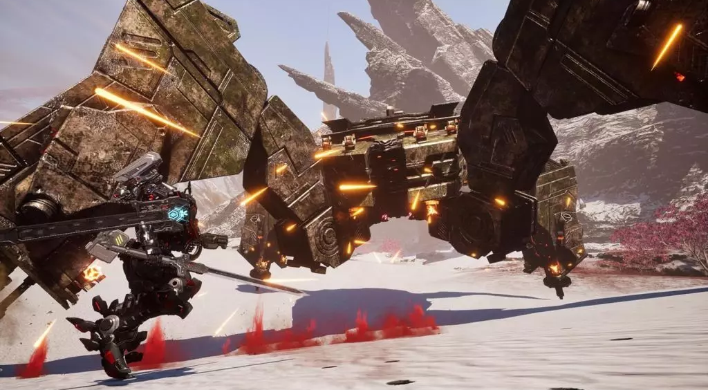 In terms of gameplay, the sequel retains the high-mobility third-person mech combat that defined the original. Players pilot customizable battle mechs called Arsenals, equipping a wide variety of weapons and gear to suit each mission. Arsenals feature multiple weapon slots and armor modules, allowing for both melee options like energy blades and ranged armaments such as rocket launchers and laser rifles. A new Particle Mode system, powered by Femto energy, offers three tactical states—offensive mode, defensive shields, and high-speed flight—requiring players to dynamically adapt to changing battle conditions.