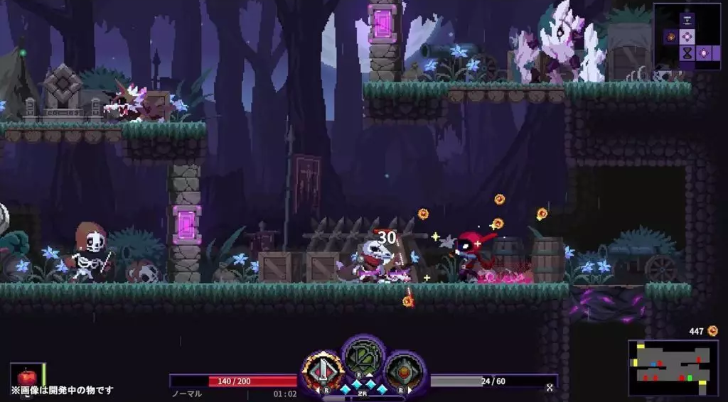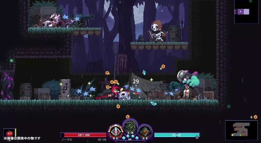 操作方面,採用經典的橫向動作平台玩法,融合精準跳躍、謹慎戰鬥與資源管理。玩家需要靈活運用各種武器與技能對抗敵人,同時閃避陷阱與環境危險。整體難度偏高,敵人攻擊力強且容錯率低,要求玩家反覆嘗試並記住敵人的攻擊模式。此外,場景設計有許多隱藏路徑與秘密,探索與戰鬥之間取得平衡是通關的關鍵。而在關卡中尋找到的「夢之商人」會販賣所需要的商品,對未來的冒險有極大幫助。