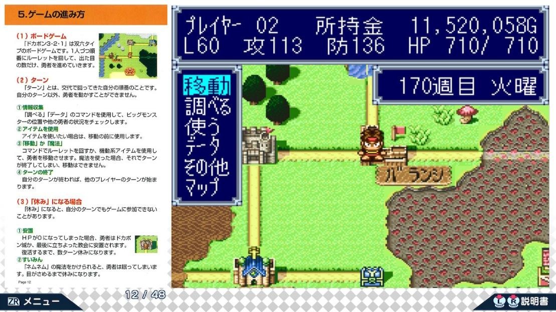 The Super Collection faithfully recreates each game while introducing several modern conveniences tailored for the Switch. Players can now take advantage of quick save and load, triple-speed gameplay, and in-game manuals that can be opened at any time during play. Each of the original instruction booklets and art materials are also fully included, making this an ideal preservation of the series’ history. Additionally, the collection features concept art and character illustrations drawn by Ami Shibata, the renowned manga artist best known for Nanako SOS, who worked on character design for Dokapon 3・2・1. For longtime fans, this adds a rich layer of nostalgia and authenticity.