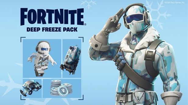 In contrast, the Ice Bundle brings an entirely different atmosphere. Its signature outfit, Frostbite, is a heavily armored soldier clad in winter white and deep blue, looking as if he emerged from an arctic military base. The bundle includes the icy Freezing Point back bling, the frost-forged Chill-Axe, the Cold Front glider shaped like a gust of frozen wind, and 1,000 V-Bucks. Frostbite also comes with a LEGO® version, giving players a charmingly frigid look in LEGO® Fortnite. Together, these items evoke a world of snowstorms, frozen wastelands, and precision operations carried out in subzero temperatures.