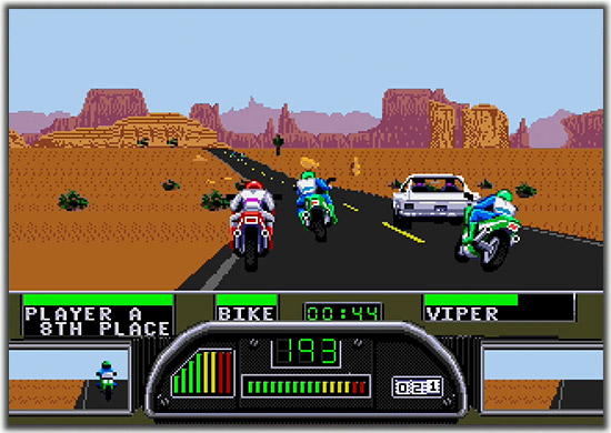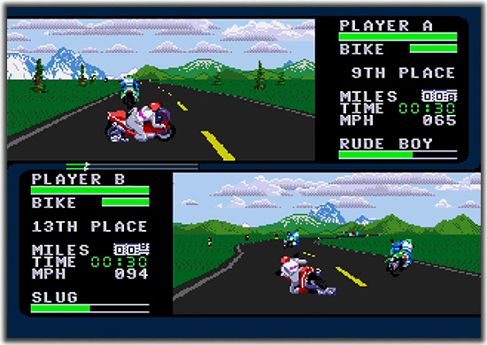 一群法外之徒們以全球的公路進行機車競速賽,世人們稱他們為Road Rusher。在阿拉斯加、亞利桑那、夏威夷等5種賽道中,展開不限規則的競速賽。可將遊戲畫面一分為二來進行對戰。