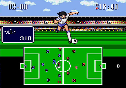 On-field actions are significantly smoother compared to previous titles, resolving the stuttering caused by character positions being redrawn only once per second. Contact with opponents now immediately triggers the command menu, keeping the match flow closer to real soccer. Additionally, the increased storage capacity allows more characters to have unique special moves, such as Misugi’s “Up Kick Volley” and the Tachibana brothers’ “Triangle Shoot,” while secondary characters like the Shuutetsu trio, Sorimachi, and Takasugi also have their own techniques, preventing them from being mere generic high-stat characters.