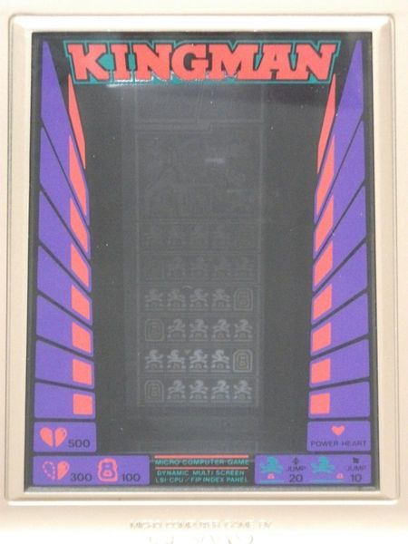 As for its market reception, KINGMAN certainly had a noticeable presence at the time of release. Its large body, wide screen, and multi-stage design made it stand out among handheld electronic games. However, shortcomings in control responsiveness and character appeal prevented it from becoming a truly enduring classic. Today, the game is valued more as a “historical artifact” and an important entry in the TOMY LSI lineup than for its intrinsic gameplay quality. In the second-hand market, its worth is often tied to brand nostalgia and rarity rather than to the play experience itself.