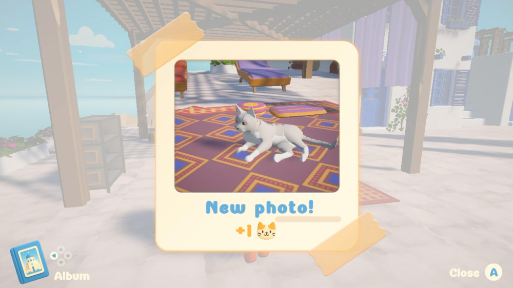 The control experience forms the core of the game’s enjoyment. Players simply focus on moving, observing, and taking photos. There are no time limits, no score competitions, and no penalties for failure. You can freely stroll across 17 colorful islands, adjust your angles, wait patiently for the right moment, or even place small bowls of water to attract thirsty cats and photograph them while they drink. The photography system is highly intuitive, allowing even players unfamiliar with games to get started with ease. By intentionally lowering the barrier to entry, the game keeps the player’s attention on observing the cats and enjoying the scenery, rather than being constrained by systems or techniques.