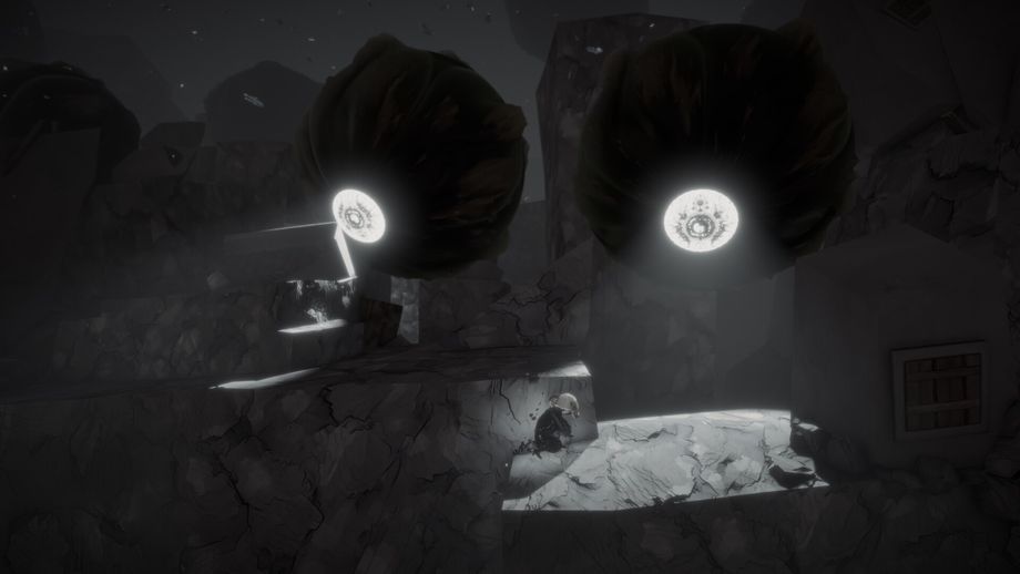 Gameplay focuses on cinematic platforming combined with stealth and escape mechanics. The world is inhabited by enormous, grotesque creatures with distorted movements and overwhelming presence. If they detect Nero, he is almost entirely defenseless, and discovery often results in instant death. As a result, hiding in shadows and carefully observing enemy behavior is essential for survival. However, stealth alone is not always enough. When discovered, players must react instantly, chaining jumps, rolls, and fluid movement across crumbling terrain to flee pursuit and reach safety—if such a place still exists. These moments place heavy emphasis on tension and precision, turning escape itself into a core form of challenge.