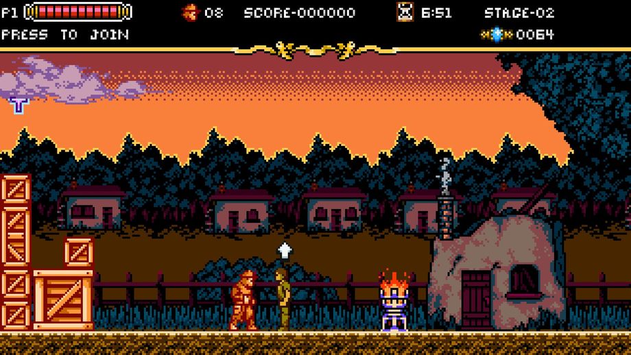 在視聽表現上,本作採用高度精緻的NES風格像素美術,搭配血腥誇張的動畫演出與陰鬱宗教氛圍,成功營造出既復古又黑暗的世界觀。8-bit chiptune音樂則以強烈節奏推動戰鬥張力,使整體體驗充滿街機式爽快感與壓迫感並存的特色。