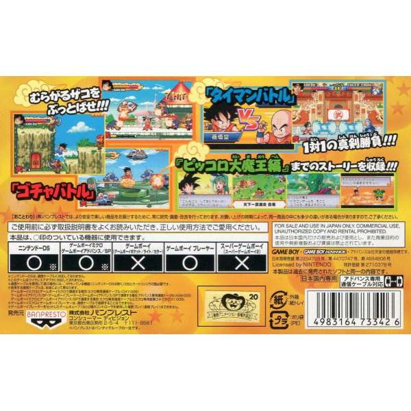 當關卡結束後就會跑到地圖模式,這時候往下個關卡的路就會出現。當玩家以為已經全破時,遊戲還需要進行第二輪才算完成,這時候可以考慮選擇跳躍能力比較強的克林來闖關,就可以跳到許多第一輪無法到達的地方,取得許多隱藏寶物,缺點是克林的攻擊力沒有悟空強。大部分的BOSS如桃白白、天津飯等挑戰難度並不高,對付最後的比克大魔王,最好能連續攻擊後馬上集氣再攻擊,否則血量相當高的比克是不好對付的。