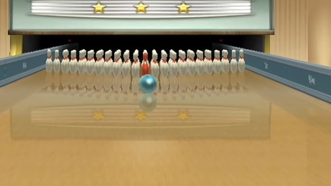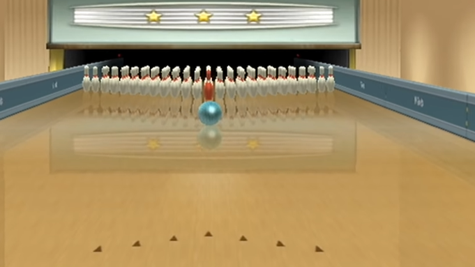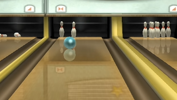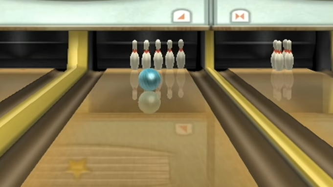 Bowling: Bowling in "Wii Sports" lets you simulate the experience of rolling a bowling ball down a lane. You perform a bowling motion with the Wii Remote to release the ball.