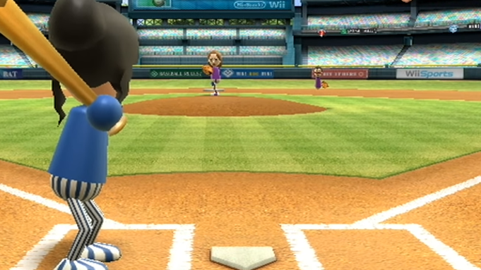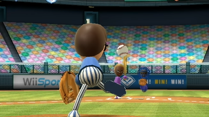 Baseball: In the baseball game, players take turns pitching and batting. Pitching involves making throwing motions with the Wii Remote, while batting involves swinging it like a baseball bat.