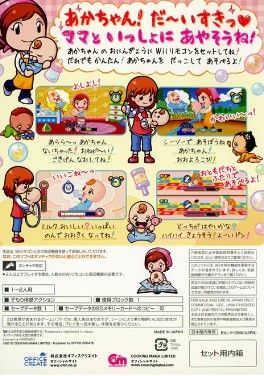 Babysitting Mama (Japanese: ベビーシッターママ) is a childcare simulation game developed by Office Create and released in 2010 for the Nintendo Wii platform. The game aims to provide players with a lighthearted and engaging experience of caring for a baby, blending adorable visuals and family-friendly gameplay. It is particularly suited for children and families looking for a casual gaming experience.