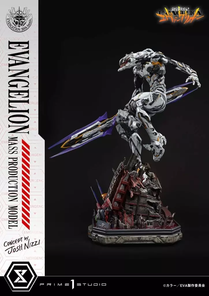 《新世紀福音戰士劇場版 EVA 量產機(Concept By Josh Nizzi)》收藏雕像,是由日本高端雕像品牌 Prime 1 Studio 推出的「Ultimate Diorama Masterline」系列最新力作。此款以美國知名概念藝術家 Josh Nizzi 的設計為核心,將經典的 EVA 量產機重新演繹成一尊融合機械與恐怖美學的極致雕像,展現出原作中令人難以忘懷的詭異與壓迫感。
